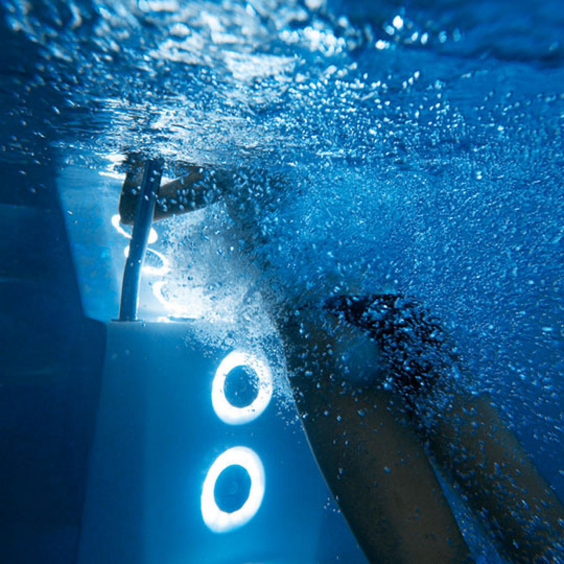 Eine leistungsstarke Pumpe sorgt für kraftvollen Wasserdruck und ermöglicht echtes Training. Vom Floating – dem schwerelosen Schwebezustand – bis zur kräftigenden Muskel-, Rücken-, Bein- und Fußreflexzonenmassage, vom entspannenden Einschwimmen und Aquawalking bis zum Hochleistungstraining – mit FloatingLounge ist so gut wie alles möglich. Und das alles mit einer faszinierenden Installation.