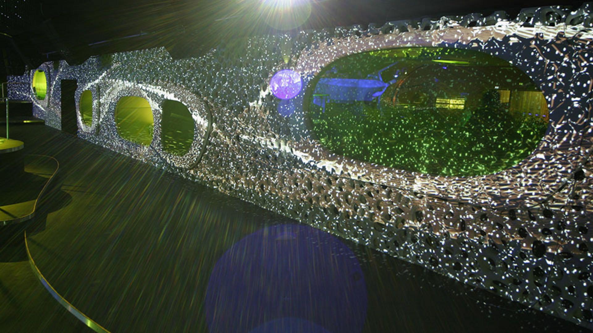 Die perforierten Wandflächen des triangulären Hauptraumes erinnern an eine permeable Zellmembran, durch deren Öffnungen der Besucherfluss stattfindet. Sie ist wegen ihres mehrschichtigen Aufbaus und ihrer Oberflächenstruktur das signifikanteste architektonische Element des Clubs. Sie wird mit einer bewegten 360°-Projektion bespielt, die in Echtzeit mit dem DJ-Set abgestimmt werden kann.