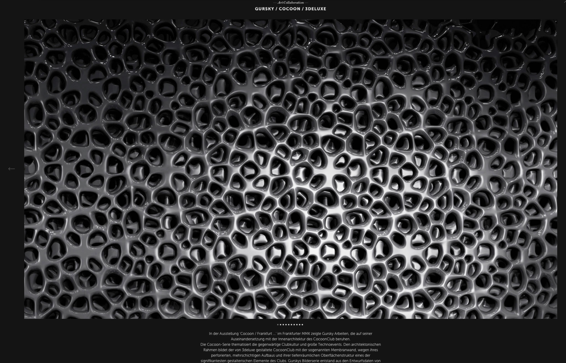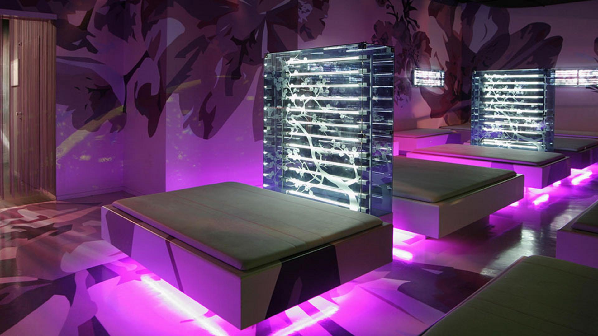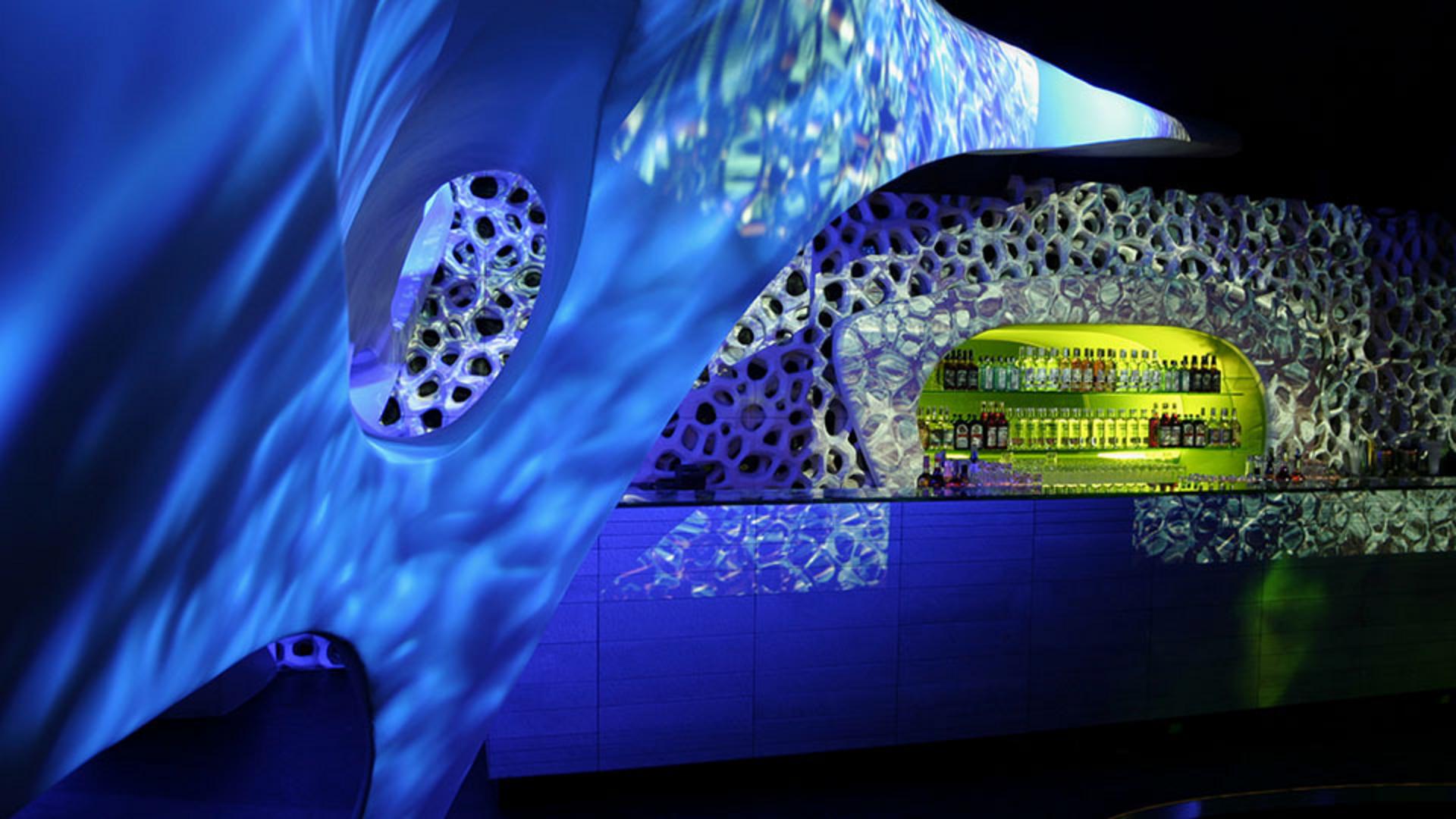 Der CocoonClub wurde als avantgardistisches Experimentierfeld für die Transformation von Raum und Wahrnehmung konzipiert. In einem interdisziplinären Prozess gestaltete 3deluxe alle Elemente zu einem ganzheitlichen Raum, in dem sich Architektur, grafisches Programm sowie Medien- und Webdesign wechselseitig beeinflussen.