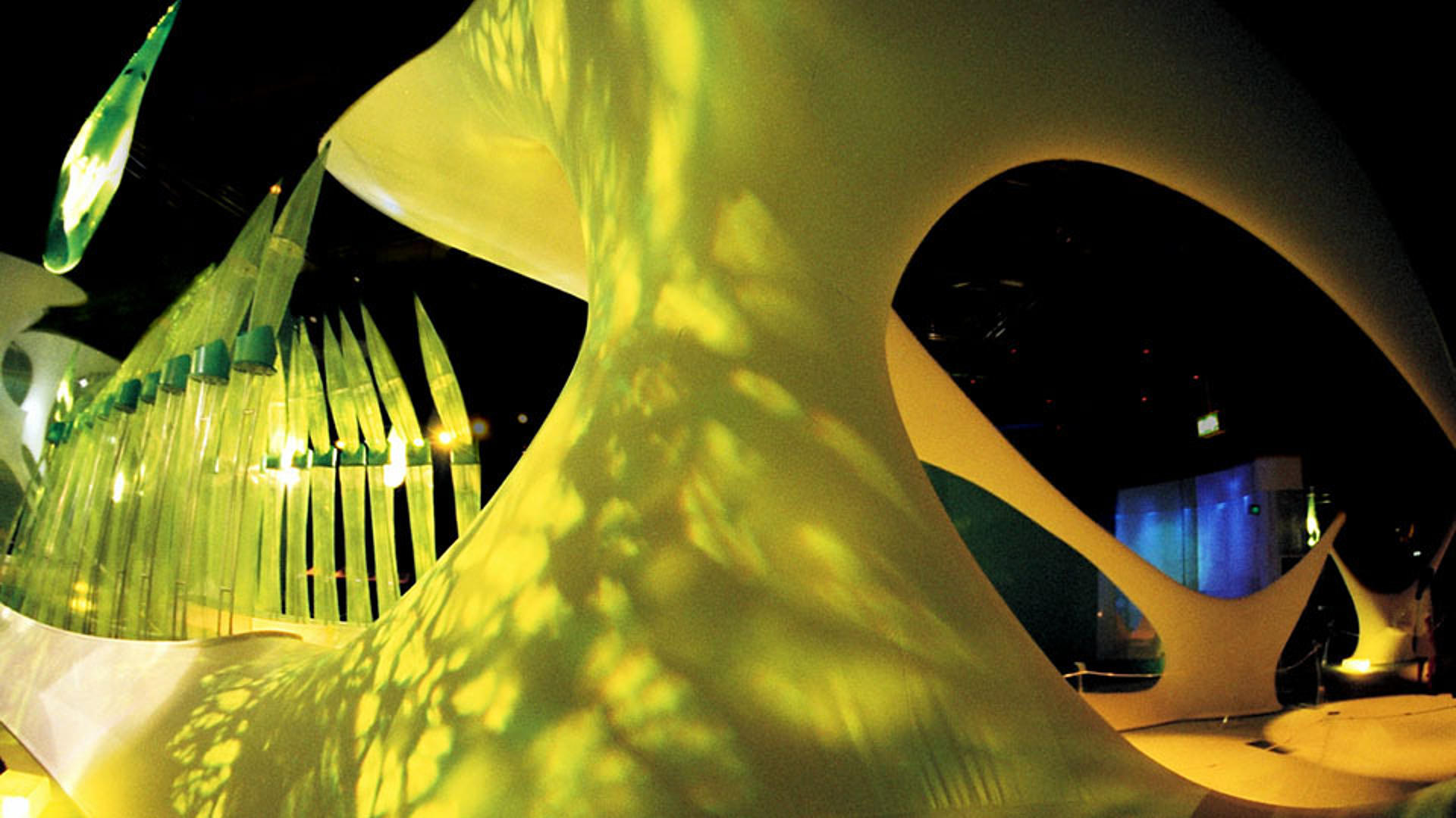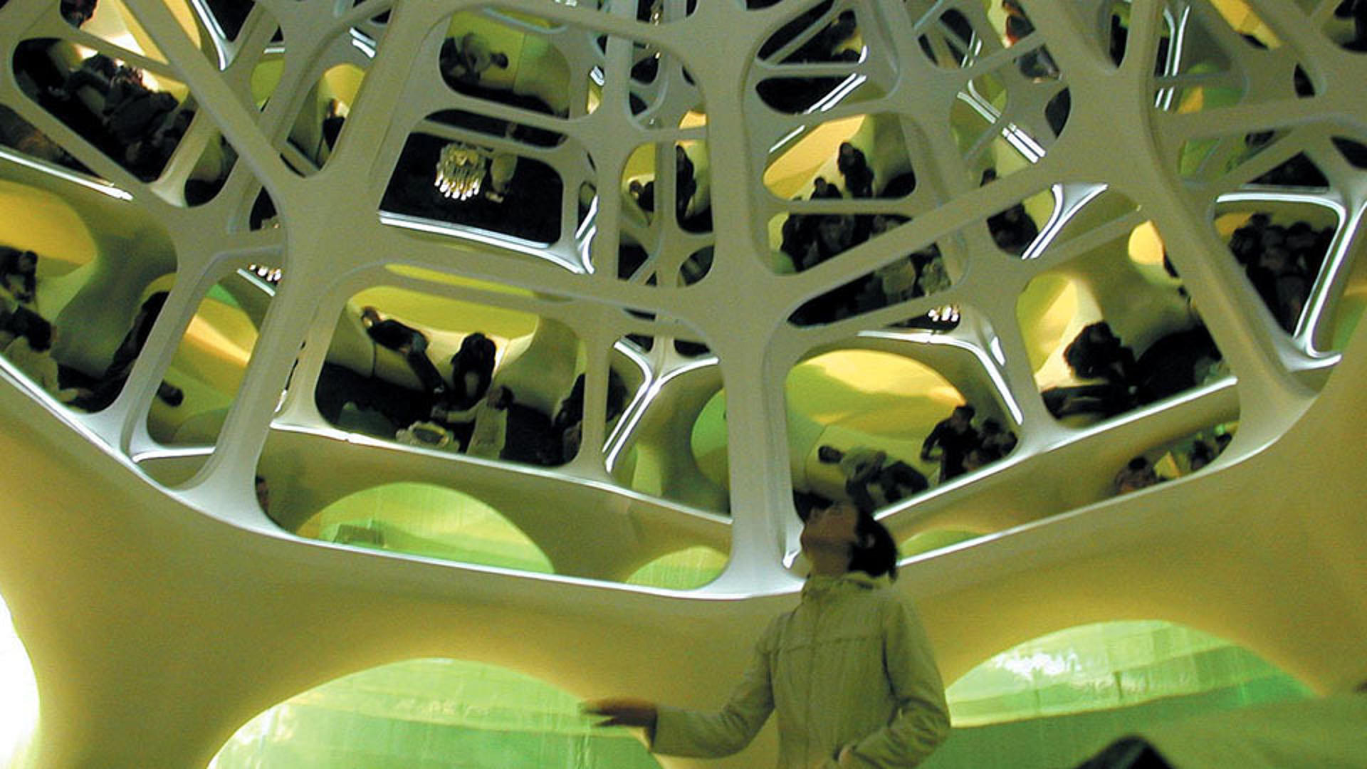 Die Gestaltgebung der realen und virtuellen Architektur beruht auf dem konzeptionellen Ansatz 'genetic architecture’, der in diesem Projekt erstmals baulich umgesetzt werden konnte. Die organisch anmutenden, textilen Strukturen entstanden in Anlehnung an computersimulierte Wachstumsprozesse. Sie symbolisieren die zunehmende Konvergenz von Biologie und Technologie.