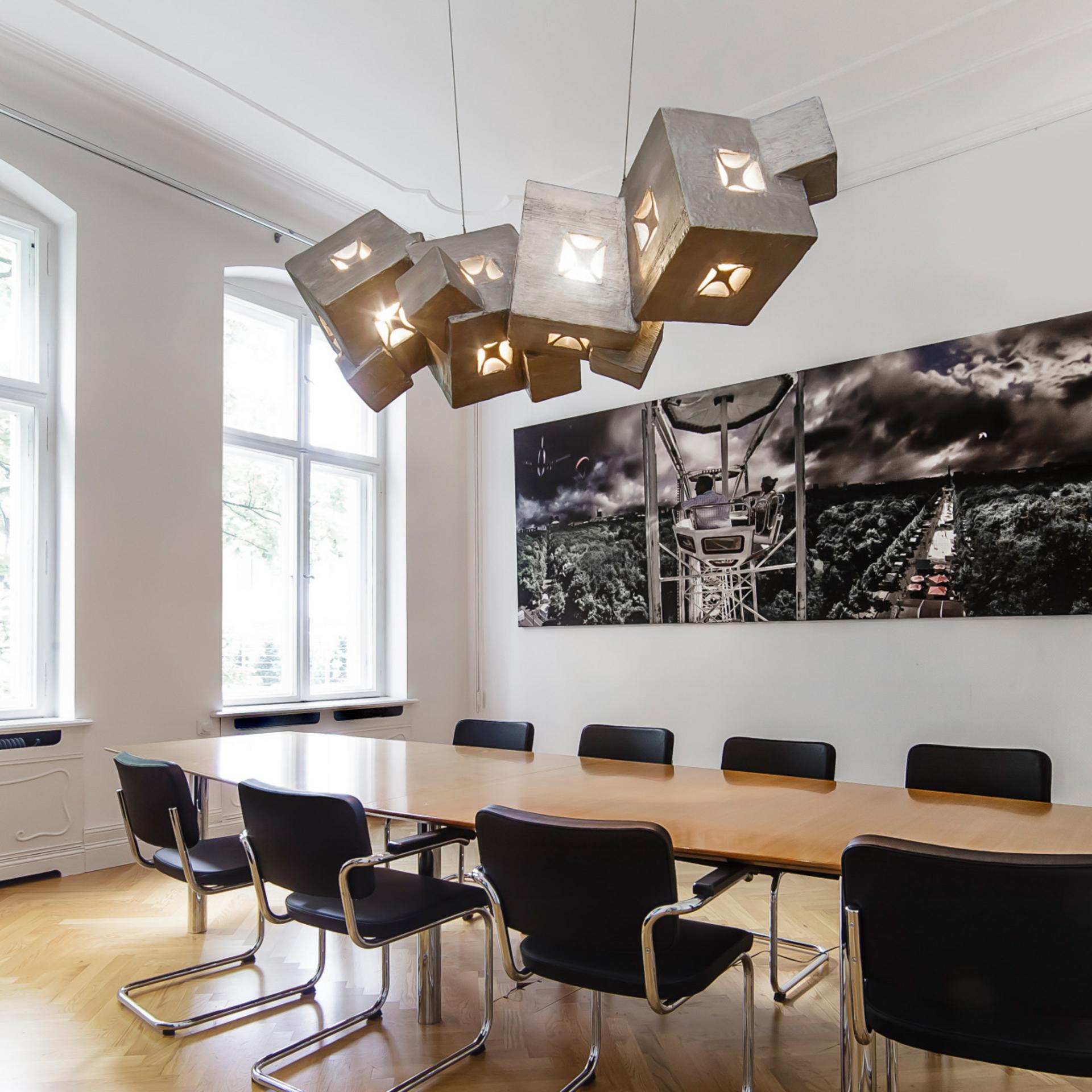 Die Design-Lampe erinnert an den Kristall Pyrit und erhält dadurch seine gewaltige und edle Ausstrahlung. Der Stein steht für die seelische Unterstützung von Kreativität und Erkenntnis. In Ergänzung zu dieser Wirkung verleiht das Licht der Design-Lampe eine virtuelle Leichtigkeit.